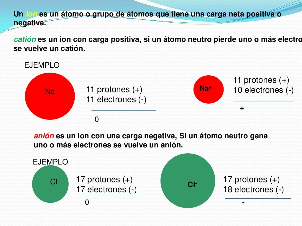 WebAnión. Un anión es justo lo contrario de un catión. Mientras que un catión tiene una carga neta positiva, un anión es un ion que tiene una carga neta negativa. Esto se debe al. WebDependiendo de la carga que adquiere, un ion se clasifica en dos tipos – cationes y aniones. CATIÓN. Es un átomo que ha perdido uno o más electrones. Esto. WebUn catión es un ión con carga eléctrica positiva, significa que, que ha perdido electrones y que se encuentra en un estado de oxidación positivo. Un anión es un. WebLos cationes se forman a partir de átomos metálicos y están cargados positivamente, por otro lado, los aniones se forman a partir de átomos no metálicos y están cargados. WebCatión y anión son términos científicos que se refieren a cargas eléctricas positivas y negativas, respectivamente. Los catión son átomos o moléculas que tienen una carga. WebEl catión (ion cargado positivamente) y el anión (ion cargado negativamente) son dos tipos de iones que se forman en el momento en el que un metal pierde los.