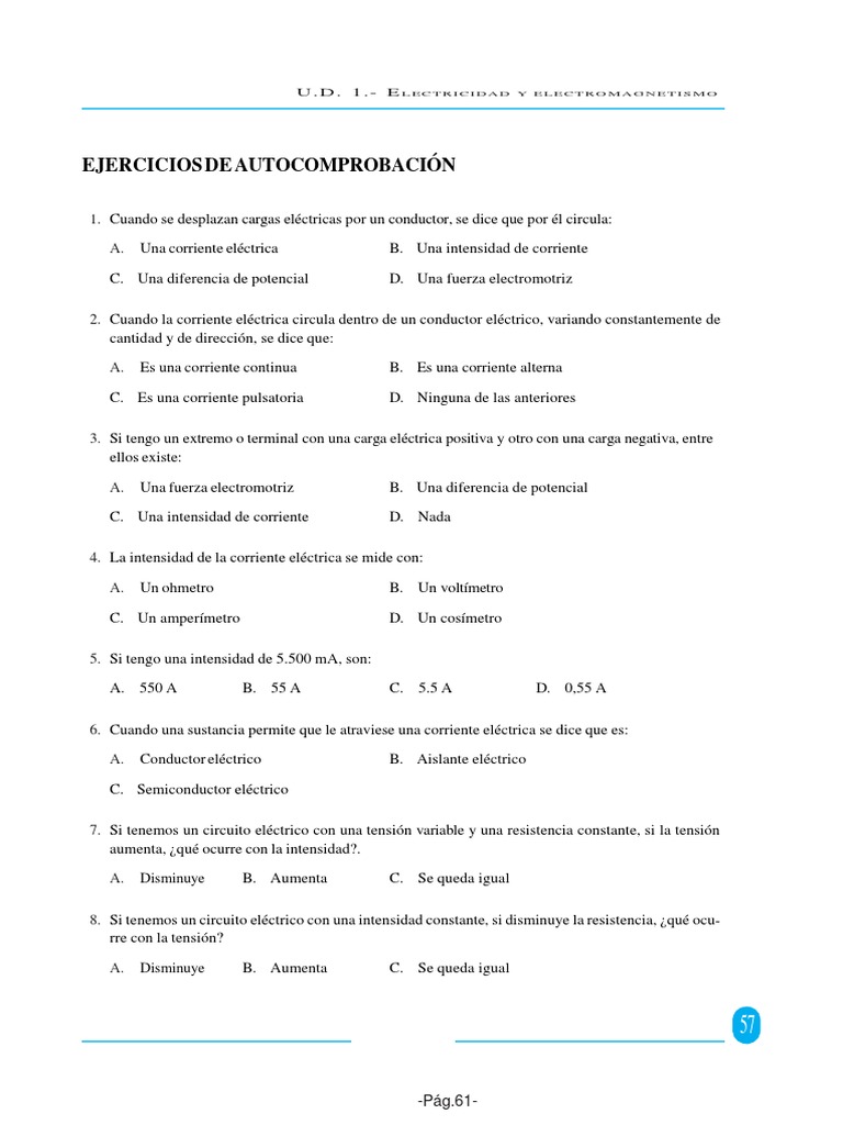 Test De Electricidad Con Respuestas. Webtest de electricidad bÁsica Mostrar todas las preguntas Si queremos medir la intensidad que pasa por un circuito, ¿Como conectaremos el amperímetro en el circuito?: WebTEST ELECTRICIDAD BÁSICA (274) Elige la respuesta correcta. Duplicar. Crear reto. Imprimir. Sobre Test. electricidad Edad recomendada: 13 años 33008 veces..