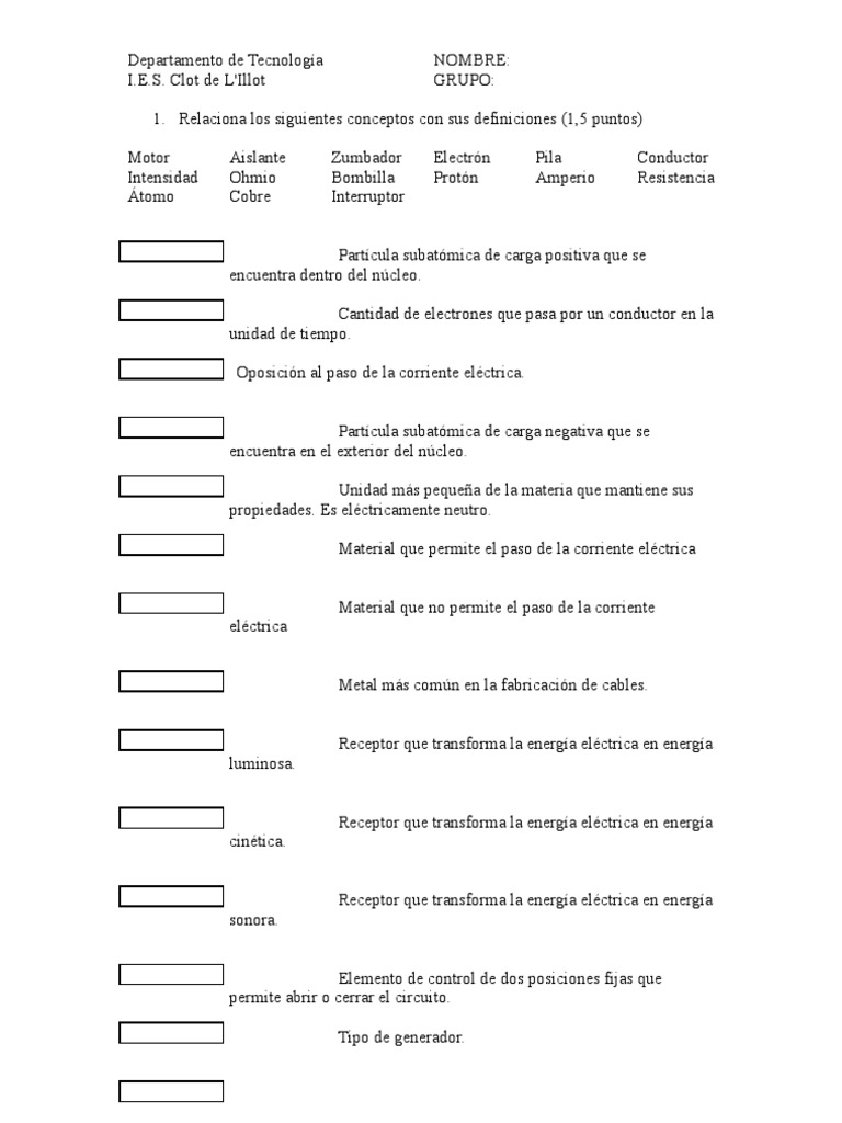 Webtest electricidad bÀsica preguntas y respuestas. ¿cuÀl es la particula mas pequeÑa de la materia? un electron una molÈcula un elemento ninguna. ¿CUÀL ES LA PARTICULA. WebClases Fisicoquímica. 356 subscribers. En esta clase, haremos un repaso acerca de lo visto en referencia a la electricidad. Son preguntas con opciones, para elegir la que creas. WebEnlazar los contadores con el circuito monofásico con neutro destinado para todo tipo de bases de enchufe colocadas en las partes comunes del edificio. ? Enlazar los. Web153K views 2 years ago Preguntas de electricidad. 8 PREGUNTAS sobre electricidad, para evaluar los conocimientos y capacidad de análisis de circuitos eléctricos. Show more. WebTest I: Electricidad: Introducción. Test II:Electricidad Simbología y asociación de elementos. Test III: Electricidad: Ley de Ohm, potencia, energía y efectos de la.